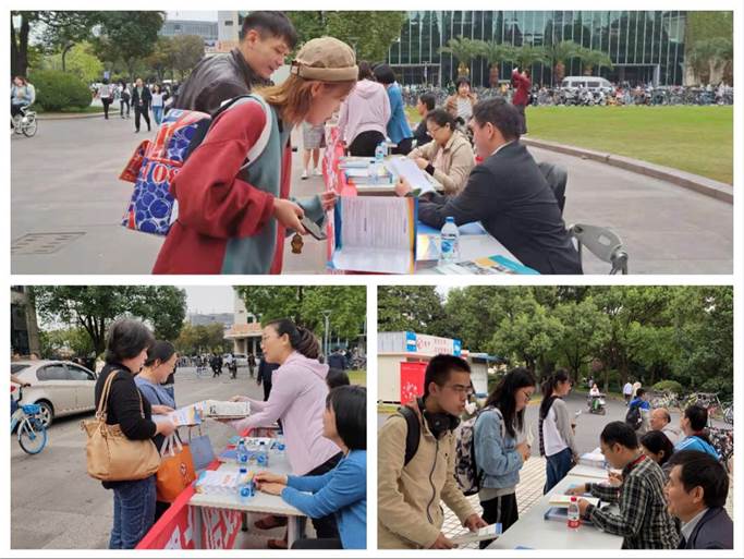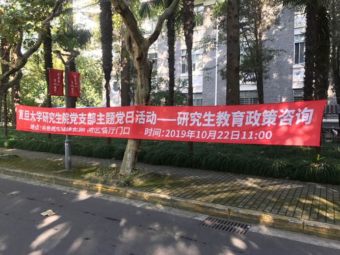 本次党支部活动分设两个咨询点:邯郸校区光华楼东辅楼东侧和南区学生餐厅门口。持续两个小时左右的活动现场,前来咨询的师生络绎不绝,党员同志们也都热情的为师生做好解答。此次活动党支部支委还特别印制了研究生教育政策咨询折页,折页内容包含研究生院的主要职能、研究生院各部门的职能及联系方式,方便大家及时准确的了解相关信息。除折页材料外,党支部还准备了研究生招生专业目录和招生宣传册,发放给有需要的师生。