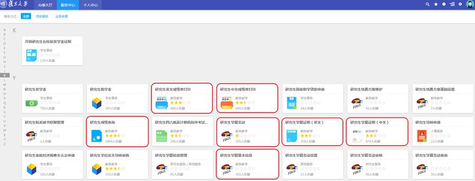 图3.“服务中心”页面搜索“研究生”的结果