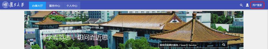 登录网址:http://ehall.fudan.edu.cn/,点击右上方“用户登录”;登录帐号:学号;登录密码:新生同迎新服务系统密码、老生为UIS密码。登陆界面如下图所示。