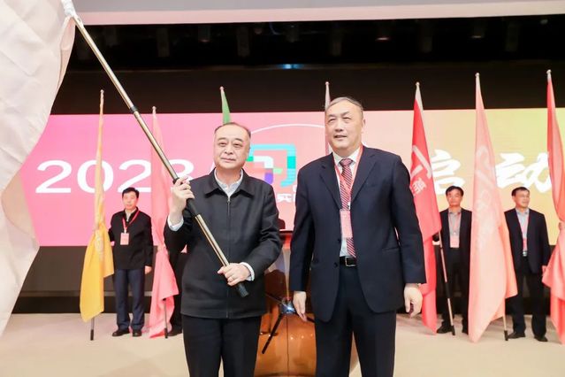 大会现场举行了2023年中国研究生创新实践系列大赛启动仪式。翁铁慧、杨卫、裘新共同按下开关,开启2023年中国研究生创新实践系列大赛新赛程,杨卫分别向本年度16项主题赛事的承办单位授旗。