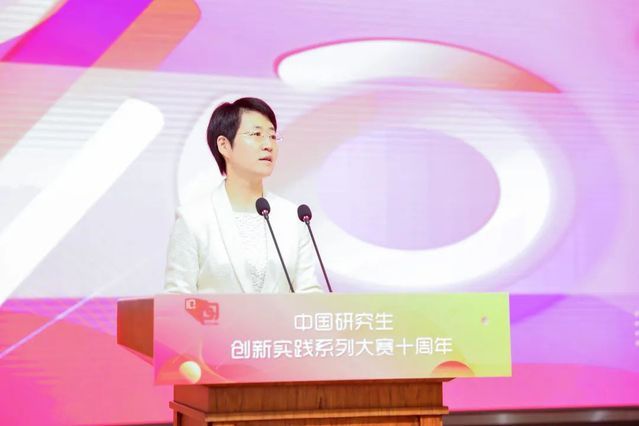 翁铁慧代表教育部对中国研究生创新实践系列大赛十年来取得的成就表示热烈的祝贺,对长期以来积极关心支持研究生教育工作的各级领导和相关单位、向长期参与研究生教育工作的老师们表示衷心的感谢。她指出,当前,我们迈上了强国建设、民族复兴的新征程,党和国家对教育提出了更高的要求和期待。习近平总书记高度重视研究生教育工作,多次对研究生教育作出重要指示批示,为建设中国特色研究生教育强国提供了基本方略和根本遵循。党的二十大报告中首次将教育、科技、人才三大战略统一部署,研究生教育作为教育、科技、人才的关键结合点,是实现高水平科技自立自强、加快建设国家战略人才力量、赢得国际竞争主动的战略资源。在党中央坚强领导下,我国研究生教育工作经历了改革创新和成效显著的十年。我们构建了多层次、全方位的学科专业体系和人才培养体系,为中国式现代化建设提供了有力人才支撑,研究生教育教学改革不断取得突破。面对新时代新形势新要求,我们要坚持守正创新,持续抓重点建设、抓系统改革、抓基础结构,向研究生教育强国迈进。一要落实立德树人根本任务,在加快培养堪当民族复兴大任的时代新人上下功夫。二要紧扣服务社会主义现代化强国建设需要,在加快全面提高研究生教育质量上下功夫。三要聚焦关键问题重点环节,在加快健全全面质量保障体系上下功夫。