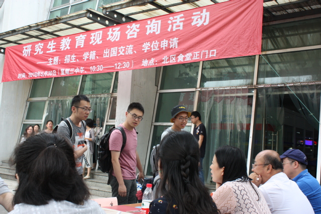 5月30日上午10点半到中午12点半,研究生院党员骨干深入学生,在北苑学生生活园区食堂门口开展现场咨询活动,就招生、学籍管理、课程教学、国际交流、学位申请和授予等研究生教育全过程的问题为同学们答疑解惑。
