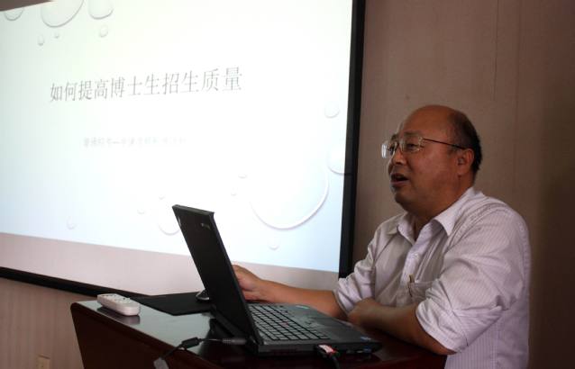 研究生招生办公室樊廷建老师以《如何提高博士生招生质量——普通招考—申请考核制度浅析》为题,回顾了我校招生改革历史和政策依据,介绍了C9高校的招考改革措施,提出了加强招生宣传的针对性、继续扩大本校理工医学科门类一流专业招收直博生比例、提高研究生硕博连读积极性、继续全面推进申请考核制等措施以提高博士生招生质量的建议。