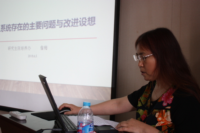 研究生院培养办公室詹梅老师以《教务系统存在的主要问题与改进设想》为题,介绍了目前系统存在的主要问题是庞大课程库的维护困难、导入的排课数据未充分校验、FIST课程没有系统对接等等,提出关于系统升级不仅仅是解决了重复的手工劳动,重要的是提供智能决策的依据的观点。