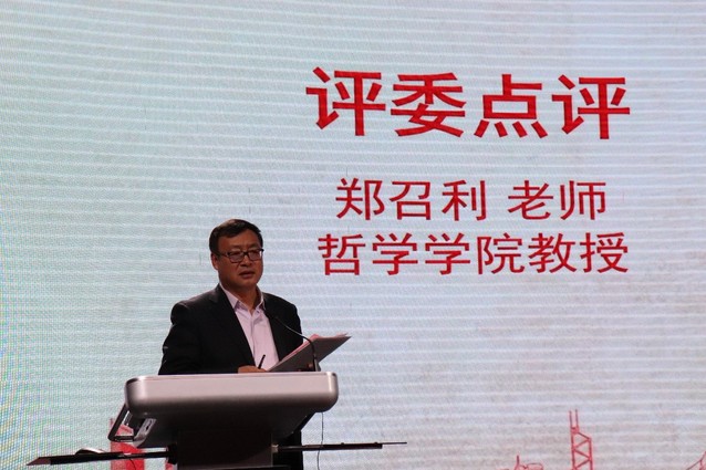 选手演讲结束后,哲学学院教授郑召利对参赛选手的演讲一一作了精彩点评,他表示演讲是声音的艺术,好的演讲是从故事入手,从小的主题入手,期待选手们从“我”讲起,通过讲故事、讲生活,带领观众走入演讲者的世界,抓住每个人的情绪,引起共鸣。