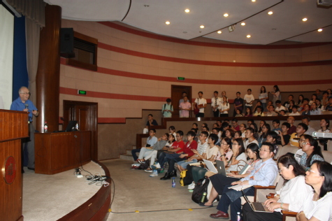 晚上6:30至8:30,在两个多小时的报告中,James Crabbe教授结合自己多年担任大学教授、科学家和国际期刊编辑的亲身经历和体会,畅谈了如何撰写高质量的学术论文、写作语言的风格、写作的简洁性和创新性、科技写作的应避免的陷阱等问题。逸夫楼报告厅座无虚席,近200名学生认真听取了报告,并与James Crabbe 教授就如何提炼学术观点、选择合适的期刊投稿、答复论文评审的意见、修改更新论文等问题进行了沟通。